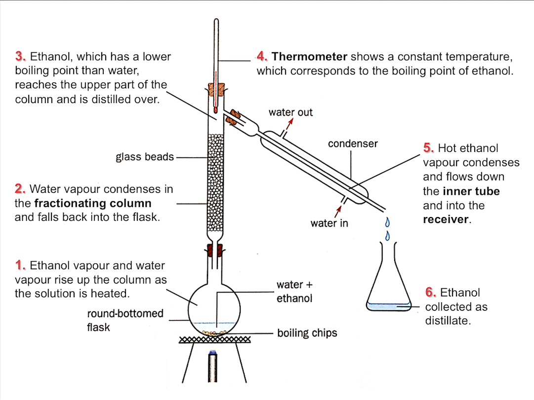 The figure below shows how ethanol can be separated from water via fractional distillation.