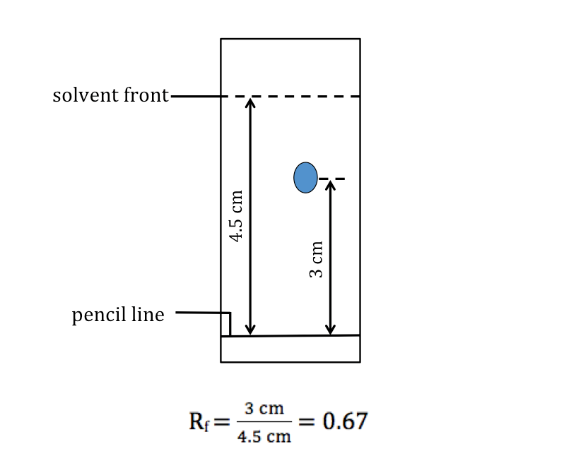 Rf value = (distance travelled by the substance)/(distance travelled by the solvent)