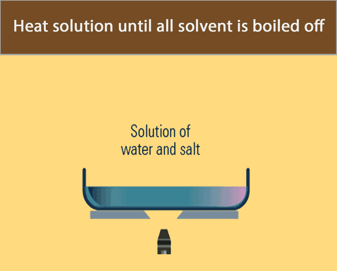 Evaporation to dryness is used to obtain a soluble solid from a solution by heating the solution until all the water has boiled off.
