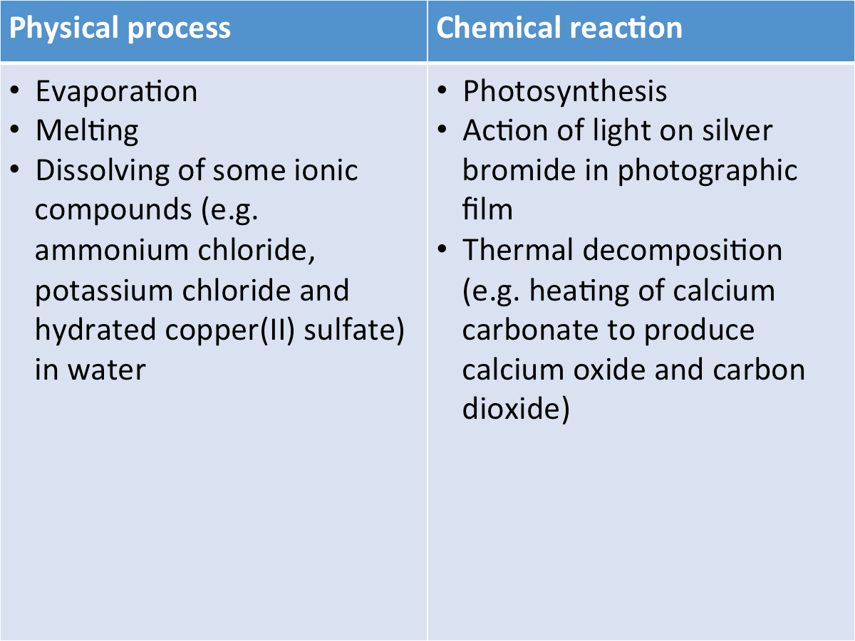 A chemical reaction takes place when the starting materials, reactants, form new substances called the products. For reactants to form new substances (products), atoms in the reactants must absorb energy from its surroundings to break existing chemical bonds (an exothermic process), for the atoms to rearrange to form new bonds of the products.