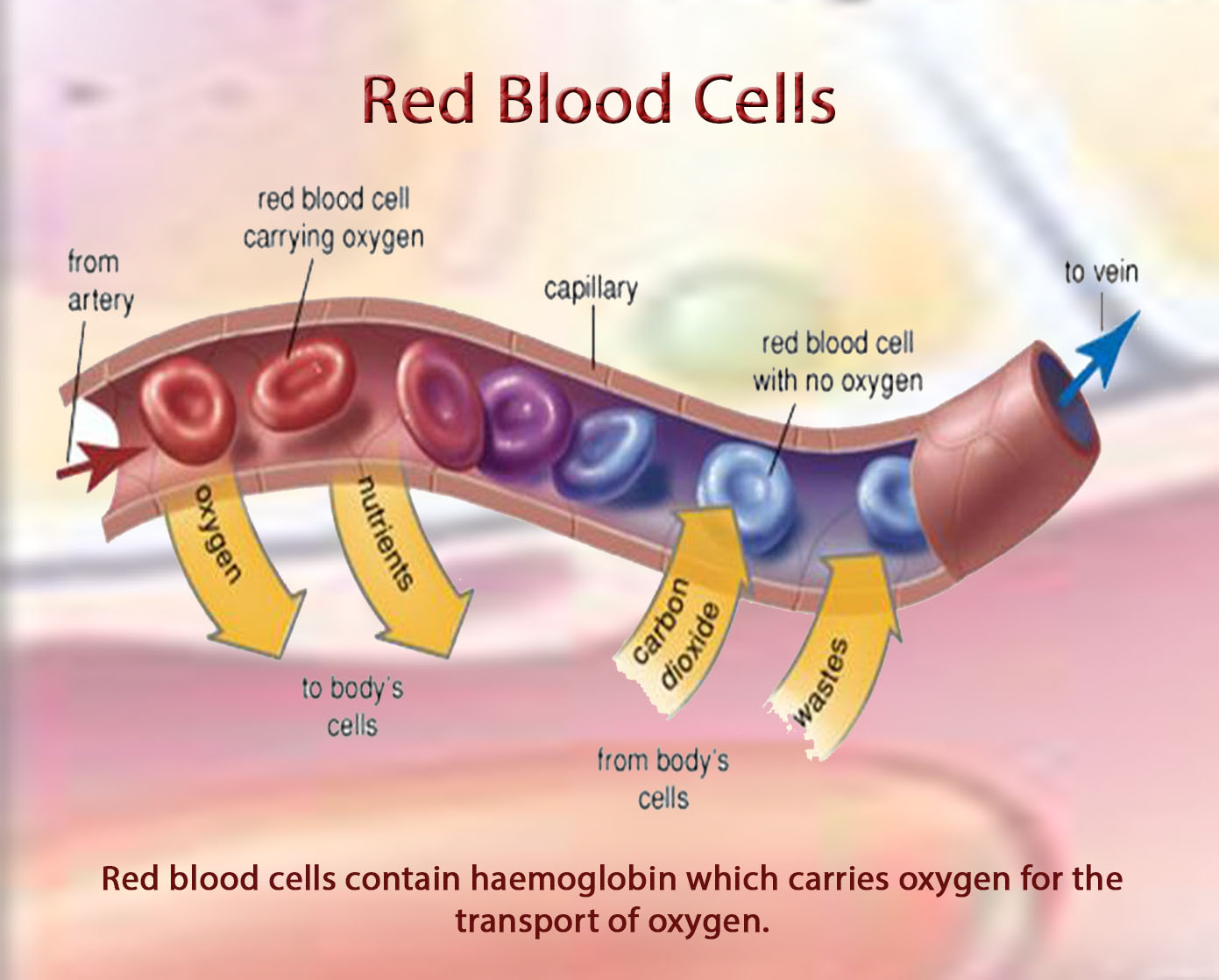 Red blood cells contain haemoglobin, a pigment, for the transport of oxygen.