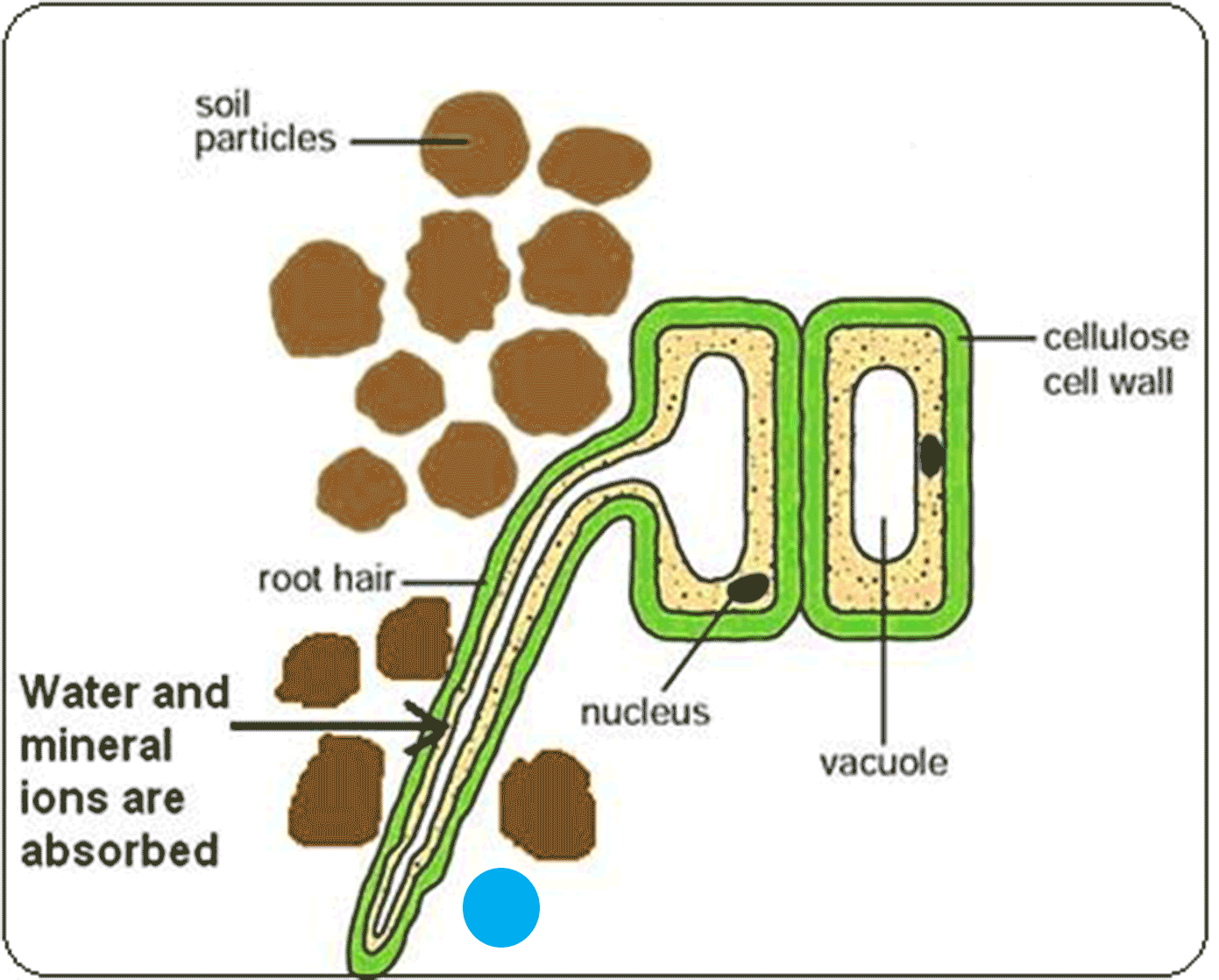Root hair cells adapts by having a long thin extension, which provides a large surface area for absorption of water and mineral salts from the soil.