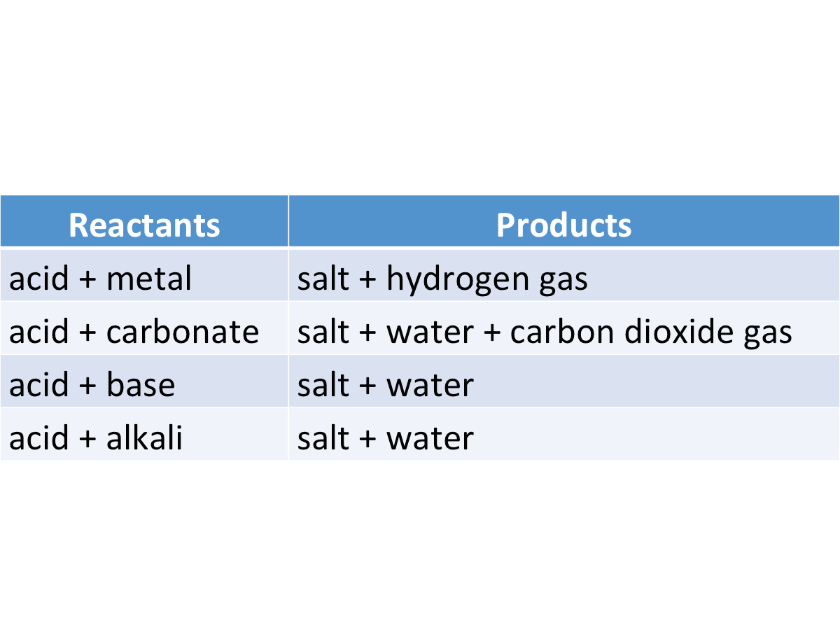 Acids react with carbonates and hydrogen carbonates to form a salt, water and carbon dioxide.