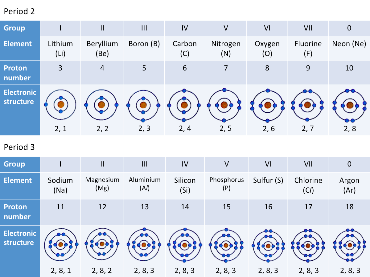 The electronic structure of an element can be obtained from its proton number. From this, the period number and group number of the element can be deduced.