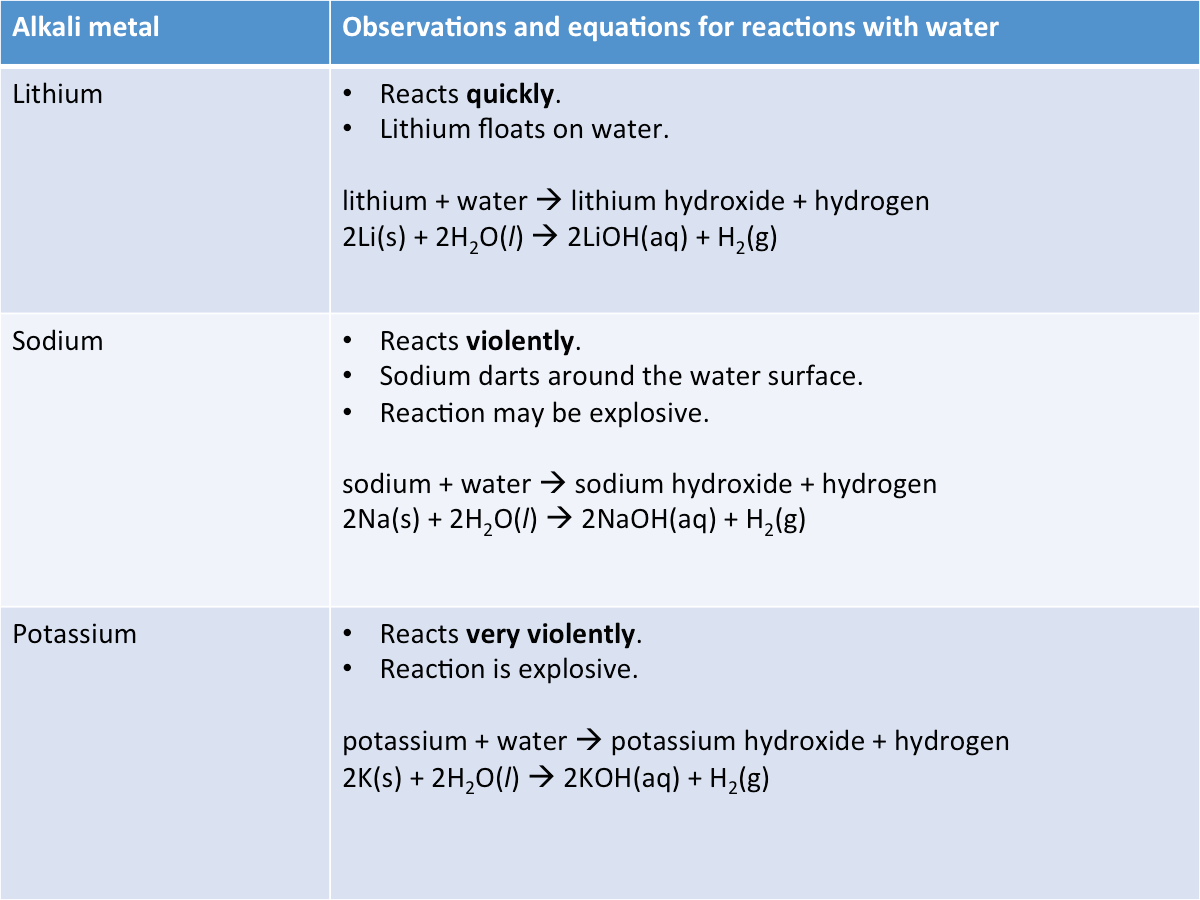 1. Alkali metals react with cold water to form an alkali and hydrogen (video)