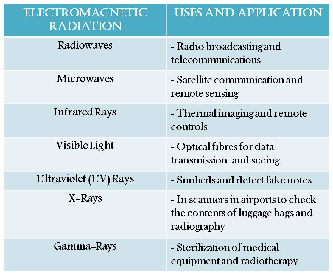 Here are the uses and applications of EM waves in our daily lives. The list is not exhaustable, and the table below only lists some of the more common uses of different EM waves.