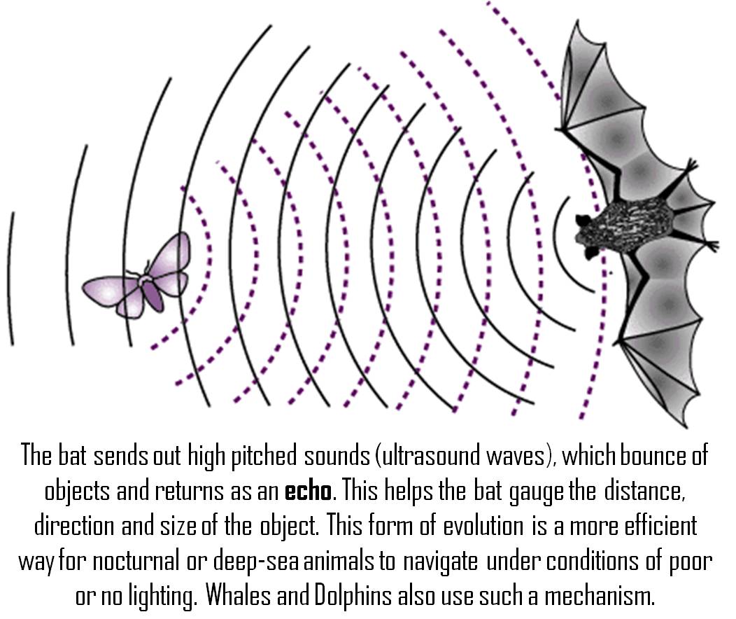 The SONAR mechanism used by ships and submarines are also usd by animals in the following video: