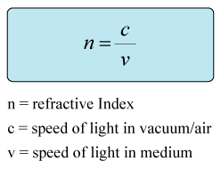 The refractive index of a medium is the ratio of the speed of light in a vacuum