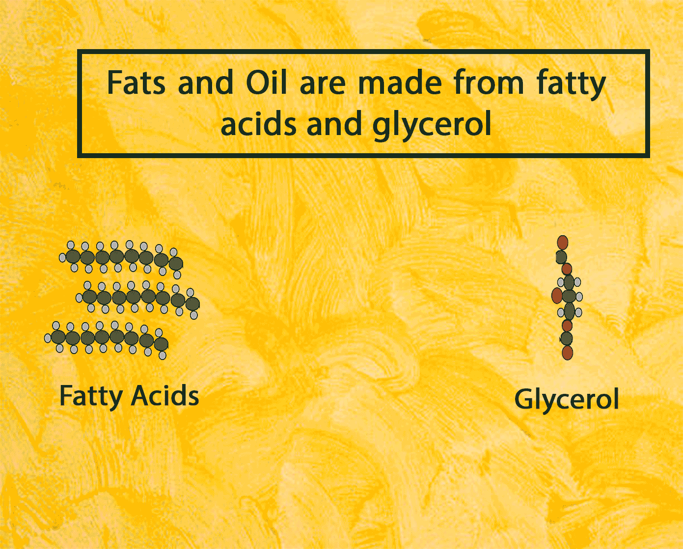 As for fats and oils; the most common type of fats are triglycerides