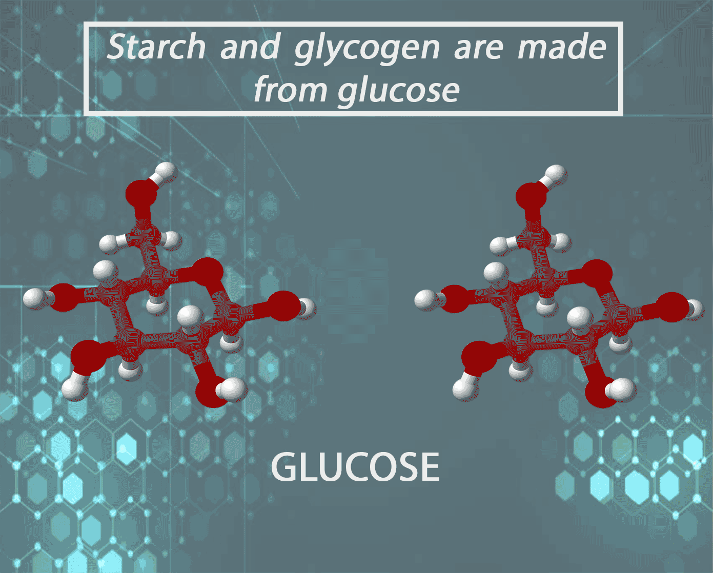 In the case of carbohydrates, starch and glycogen are large polymer molecules made of glucose.