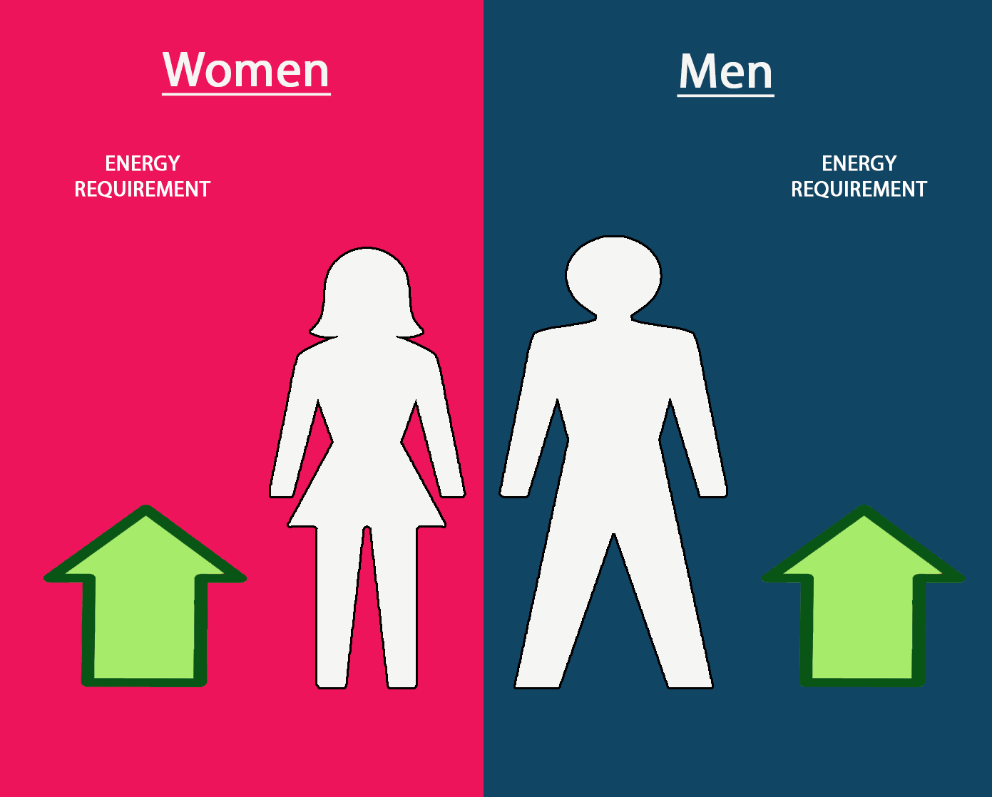 Males usually use more energy than females due to their larger body frames and higher metabolism rates.