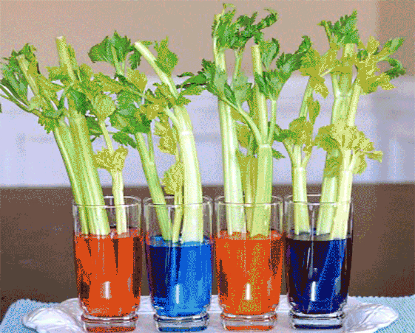 Cut the base of a stalk of celery (the non-leafy end) under water. Place the stalk in a beaker of water that has been stained with red food dye, the base end down, and place it in room temperature conditions, under a bright light and a slight breeze. You may observe red lines travelling up the stalk, and then through the leaves. If you cut the stalk halfway, you can also observe where the xylem vessels