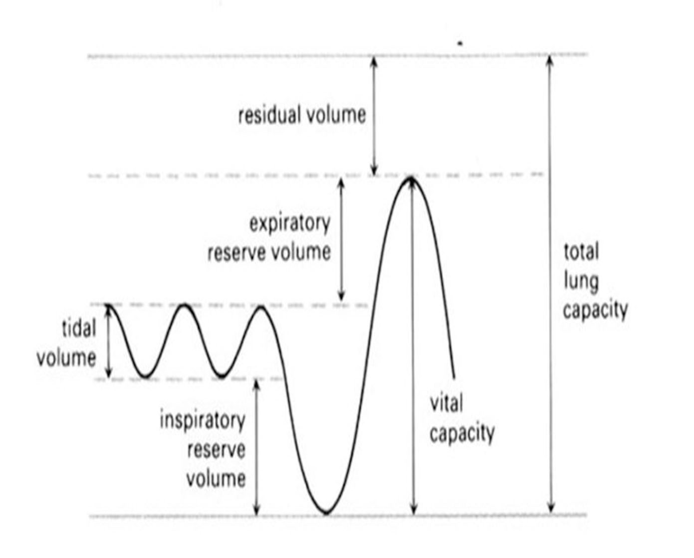 In normal breathing, the volume of air breathed in and out is usually about 0.5 litres (this is the tidal volume), and the breathing rate is about 12 breaths per minute.